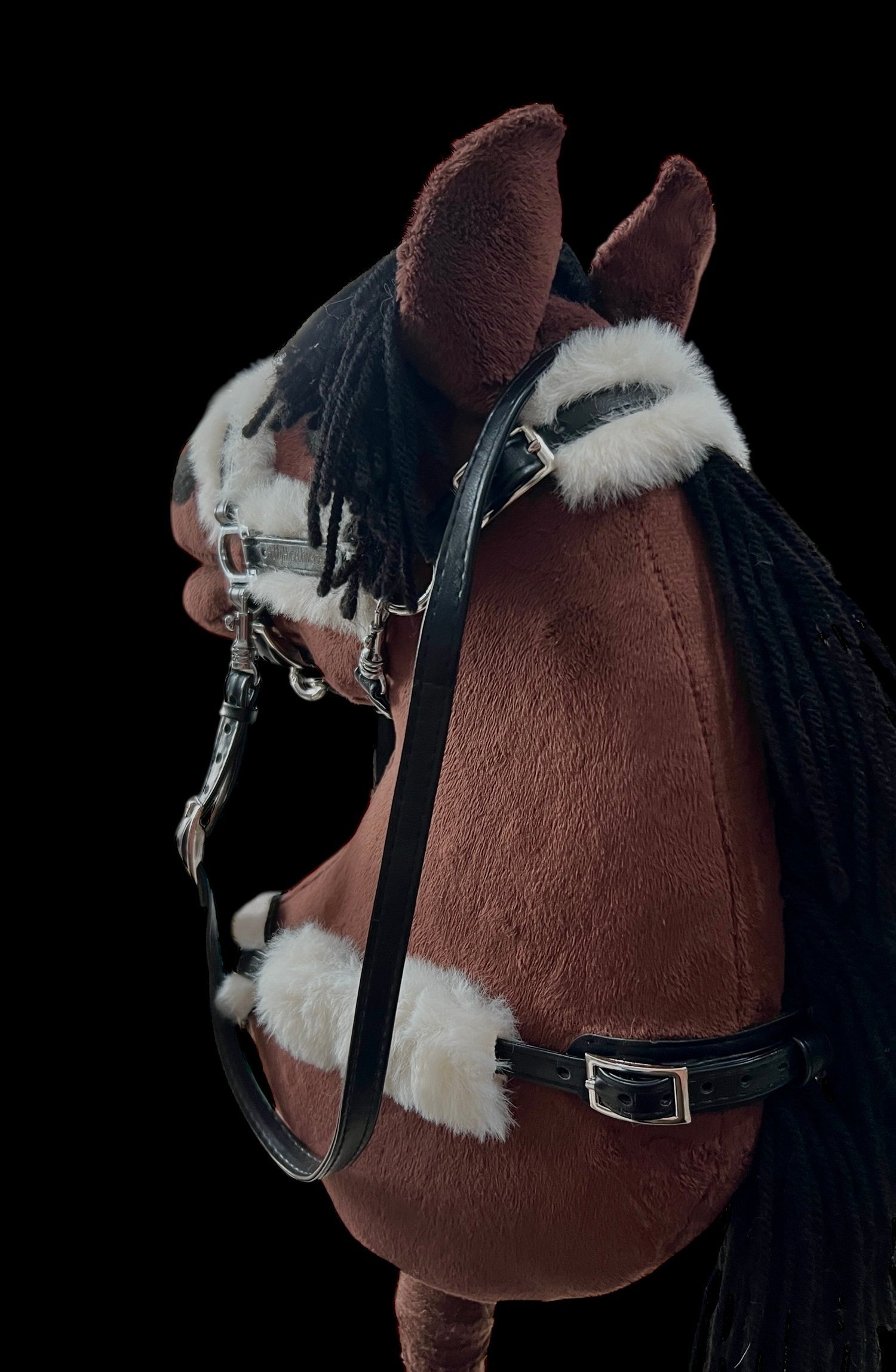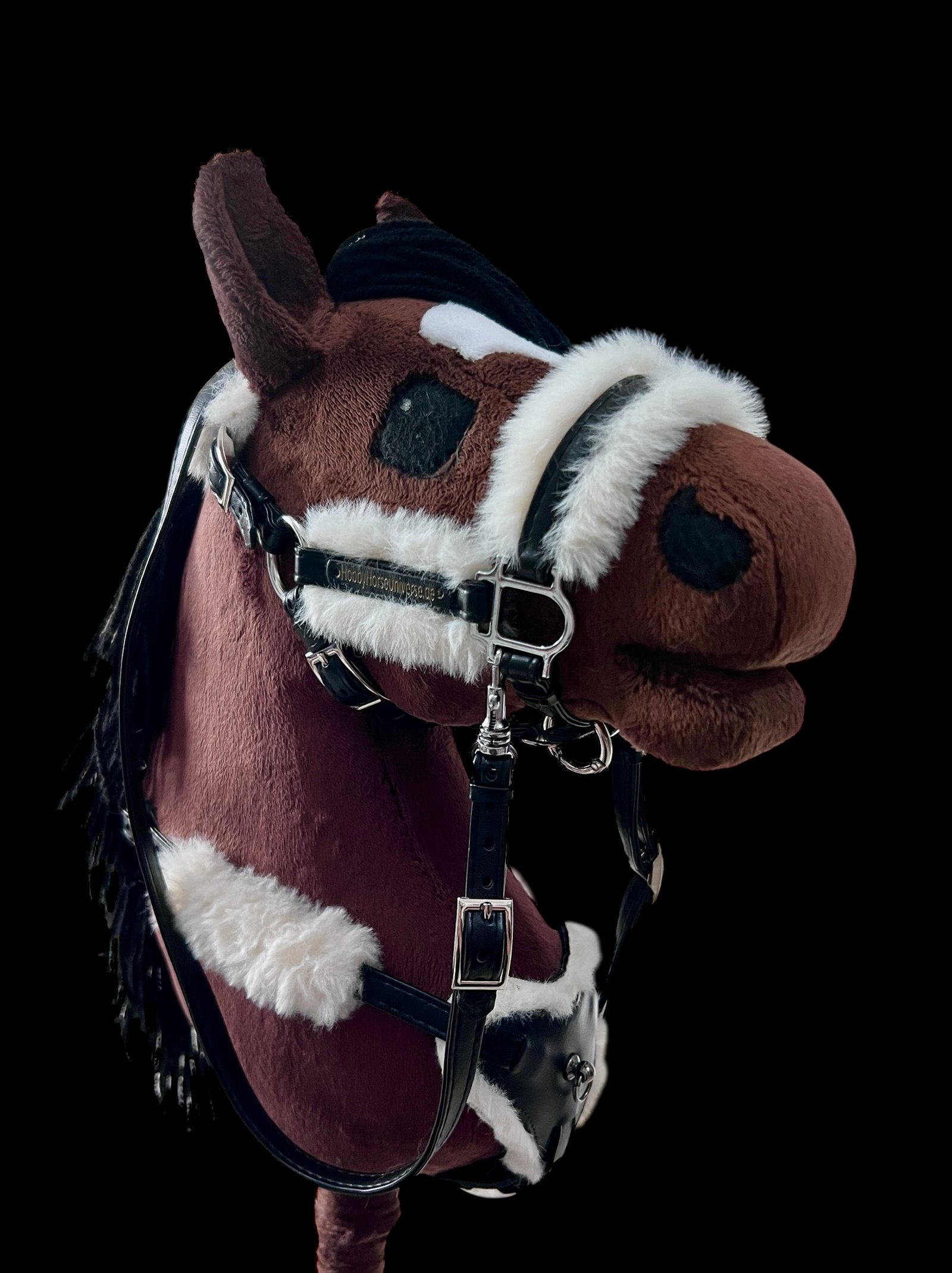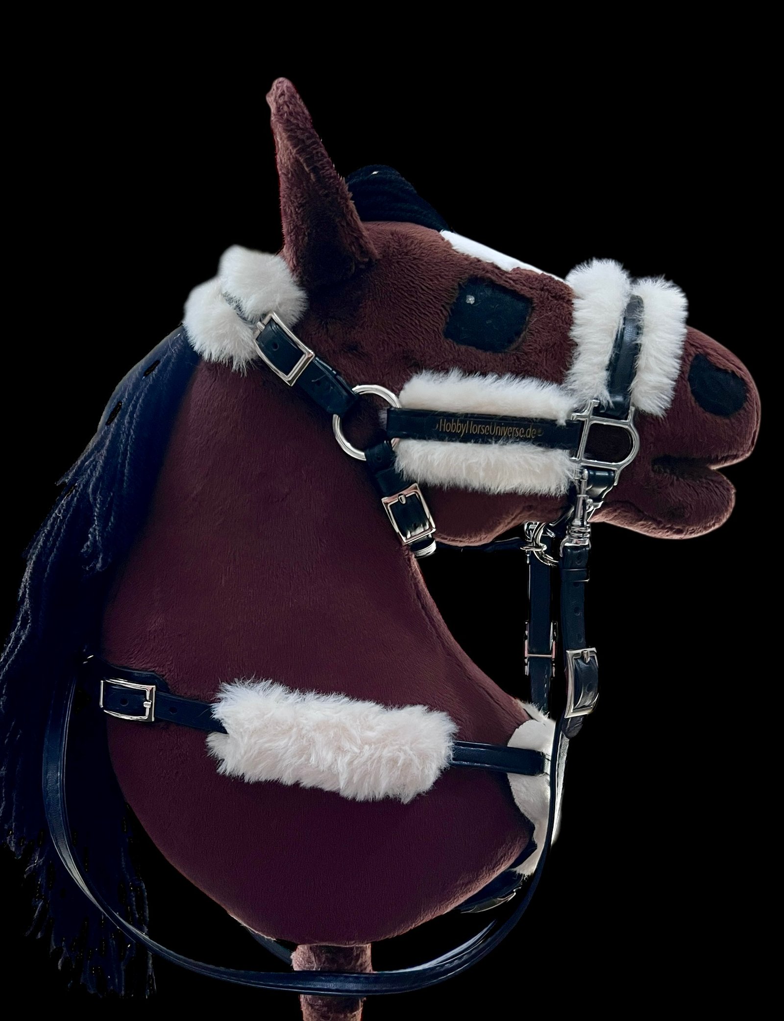 Verkauft wird ein superschönes, unbespieltes Winterset bestehend aus einem komplett verstellbaren Fellhalfter, dem dazu passenden, verstellbaren Vorderzeug und Zügeln. Das ganze Set ist sehr hochwertig verarbeitet und passt auf Hobbyhorses in der Größe Fohlen und auch A4.
