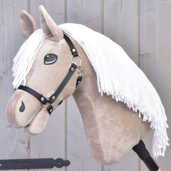 Das Hobby Horse Blondie ist einer edlen American Quarter Horse Stute nachempfunden und begeistert mit ihrem wunderschönen, cremefarbenen Cremello-Fell. Blondie ist vielseitig, freundlich und zuverlässig – perfekt für Dressur, Springen, Training und fantasievolle Rollenspiele.