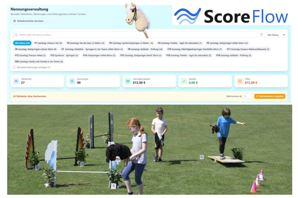 ScoreFlow ist die erste umfassende Softwarelösung, die speziell für die Organisation und Durchführung von Hobby Horsing Turnieren entwickelt wurde – von Hobby Horser für Hobby Horser.